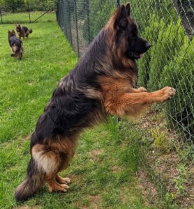 Here at Wolfstone Kennel, all of our dogs come from generations of health and temperament tested lines. They are also raised by our family and handled by children from day one to ensure proper socialization before going home. All of our Shepherds are imported from Europe to guarantee that they are from quality, health tested, championship lines – some of the best in the world!